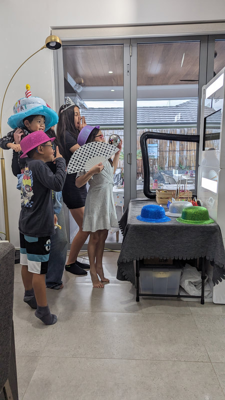 A 7th Birthday Party! For this celebration, we used a simple black backdrop and customized the photo strip icon for Raphael's birthday. The modular photo booth is designed to accommodate guests of all ages and sizes!